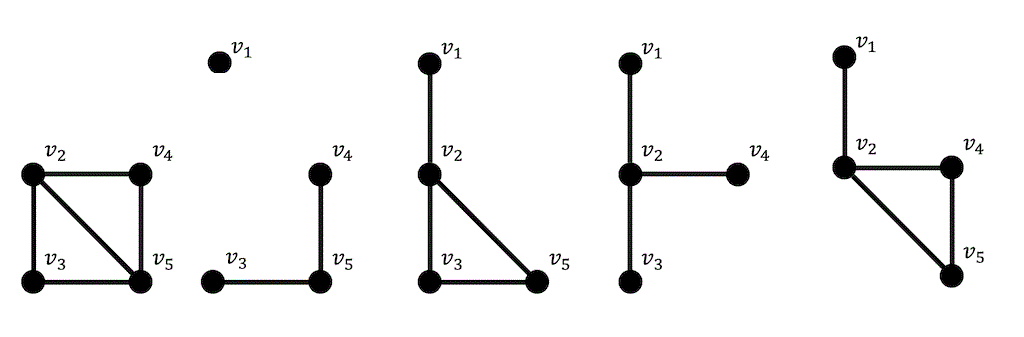それぞれの頂点の取り出し方に対して必ず1通りなので4つの頂点からなる誘導部分グラフは全部で5通りあることがわかる。